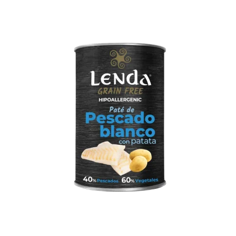 Alimento húmedo Súper Premium hipoalergénico de pescado blanco con patatas. Receta ideal para perros salidos de una operación o con el estómago sensible debido a alergias o intolerancias alimentarias.